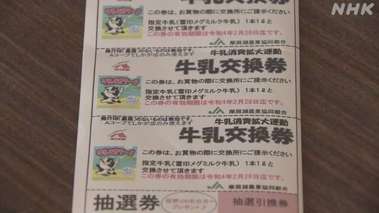 在当地农协旗下的超市开始兑换后,持券的人们不断前来领取牛奶。其中也有人5张都用完,换了5升。如果所有的券都能使用的话,町内大约可以消耗2万升的牛奶,农协呼吁大家积极使用。
