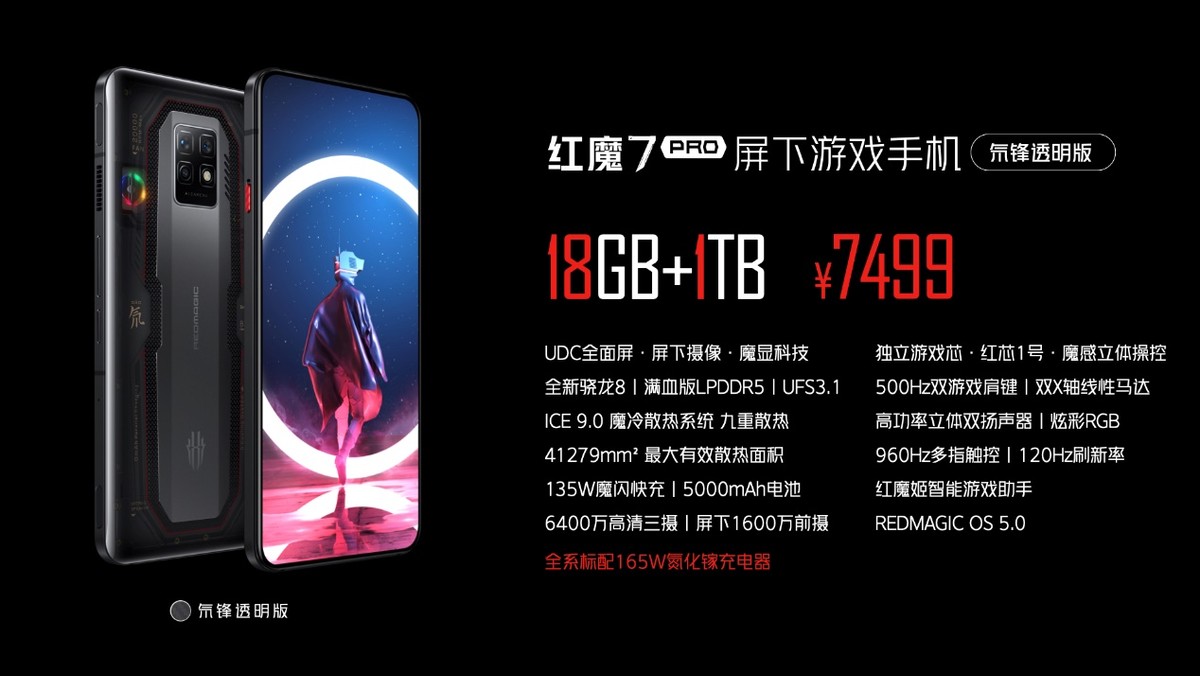 标配165W快充!行业唯一屏下摄像游戏手机红魔7于2.21开售仅3899元起!
