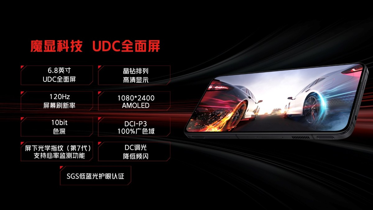 在玩家与手机交互的核心窗口——屏幕方面,红魔7系列继续搭载其首创行业最高165Hz刷新率AMOLED超清电竞全面屏,支持高达960Hz多指控采样率,毫秒级的触控响应,让玩家与游戏交流时始终快人一步。而红魔7 Pro更是直接应用了行业最新的UDC屏下摄像技术,通过两大行业首创技术鼎型像素排列和波浪型电极走线,以及 7层高透材料、内置UDC Pro屏显芯片、多驱ACE电路设计,整块完美无缺的屏幕兼顾显示与拍摄,成为业界首部屏下摄像真全面屏游戏手机,为玩家带来了目前最完整且沉浸的游戏体验!