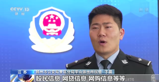 扬州市公安局景区分局平山派出所民警 卞晨:股民信息、网贷信息、网购信息等等,其中价格售价最贵的是股民信息,售价为5元一条,股民信息的信息类别包括股民的姓名、联系方式、身份证号码、开户的时间、交易的金额以及交易的时间等等。
