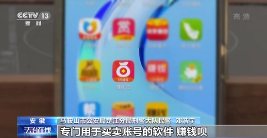 马鞍山市公安局楚江分局刑警大队民警 邓浩宇:贺某到案后交代了其注册,并且出售社交软件账号的犯罪事实,同时,我们在贺某的手机当中发现了专门用于买卖账号的软件“赚钱呗”。