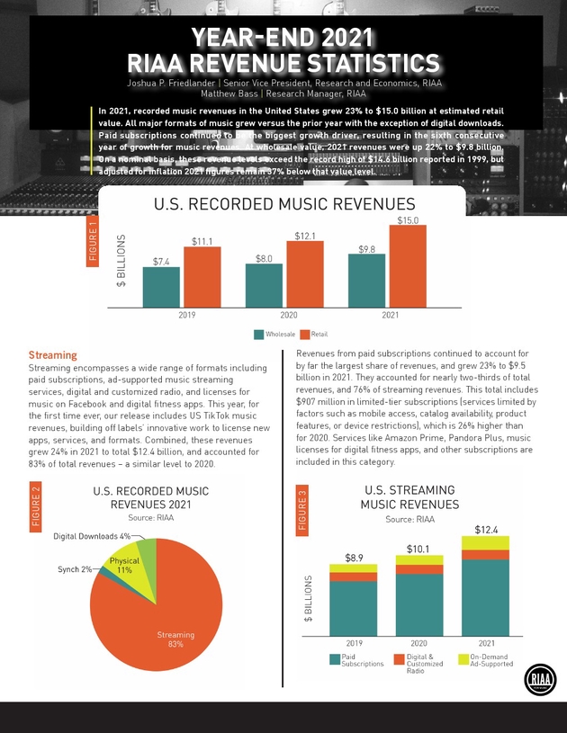 美国唱片业协会:2021年付费音乐流媒体订阅量同比增长11%