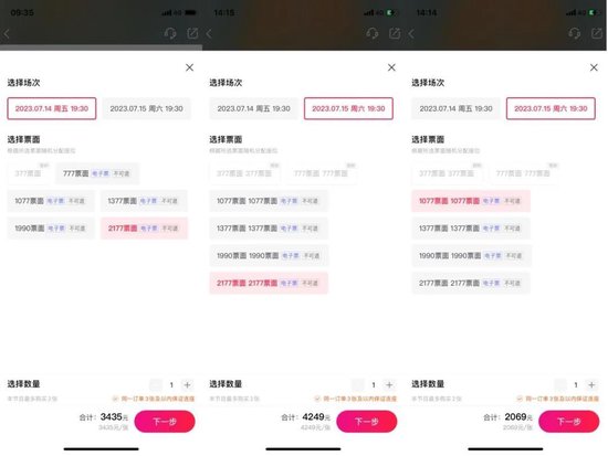 有抢票经验的消费者有个共识,即便官方票务平台已经显示缺票了,但在摩天轮上,仍会显示可以“立即预定”或者“立即购买”,只不过这个时候的票价已经翻了好几番了。比如,鹿晗演唱会重庆站2177元票面的门票卖到4249元,周杰伦演唱会太原站原本2000元的内场票卖到7412元。