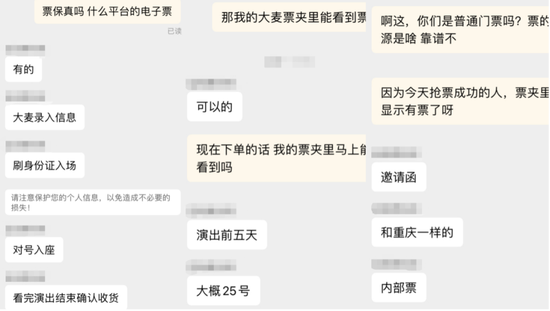 除此之外,一部分给赞助商、媒体公关、行政部门的工作票,也会被卖到黄牛手里,这类票的数量不多,基本以邀请函的形式存在。有黄牛告诉锌财经,会在演出前五天左右拿到邀请函,到时候会提供邀请函的照片,让消费者扫码实名绑定。