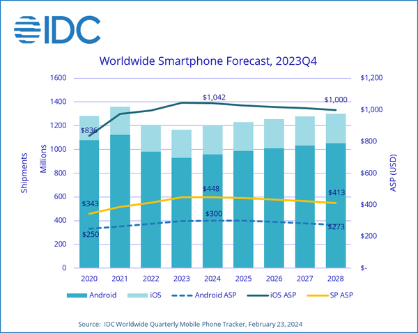 IDC:预计2024年智能手机出货量将增长2.8% 折叠屏快速增长