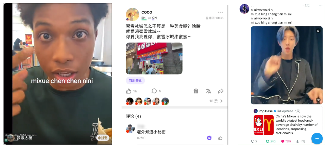 kpop 明星在唱,黑哥们在唱,老美在唱。一首蜜雪冰城甜蜜蜜,自动成了社媒上传播的杀器。