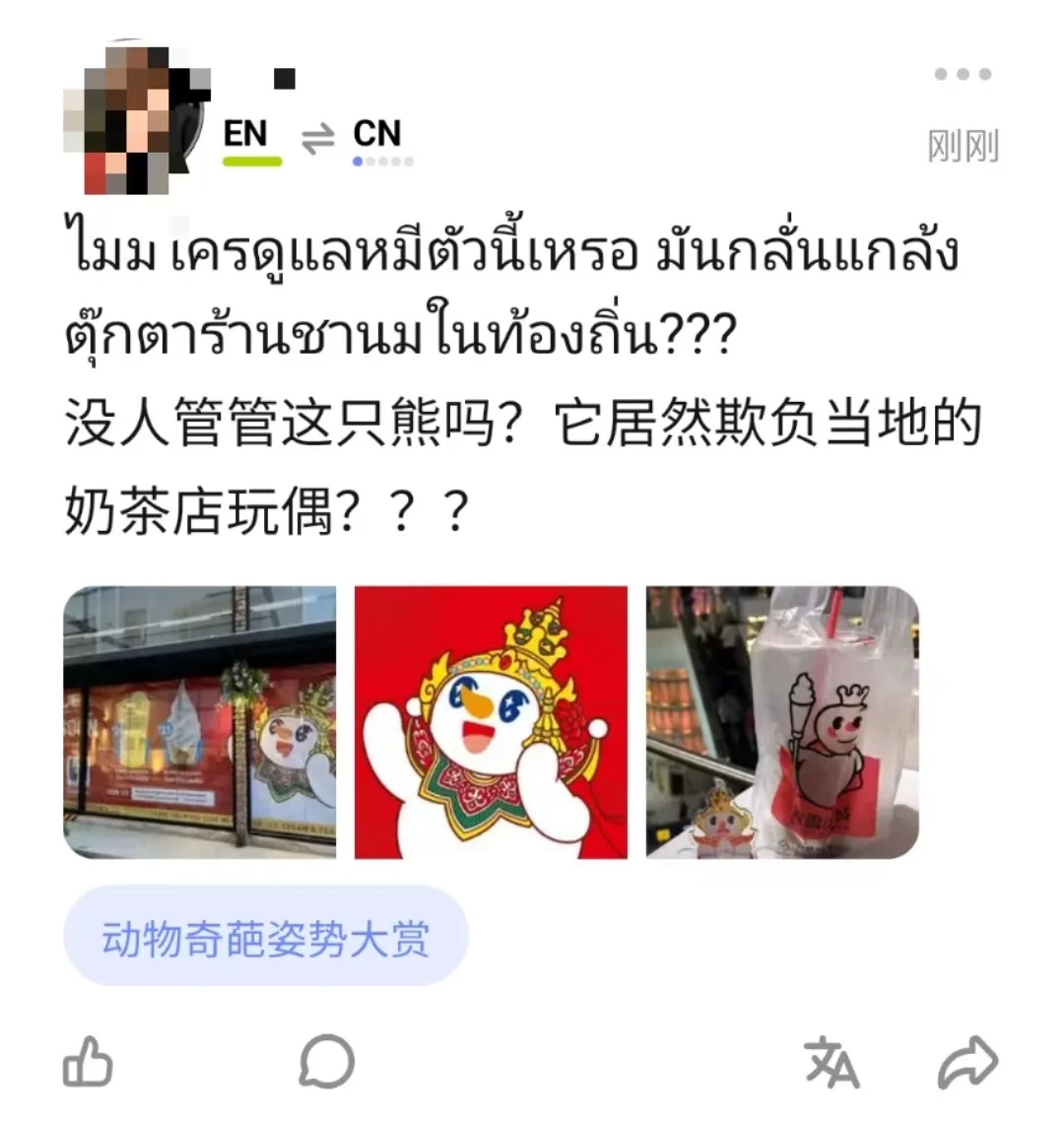 “ 没人管管这只熊吗?它居然欺负本地奶茶店的玩偶???”