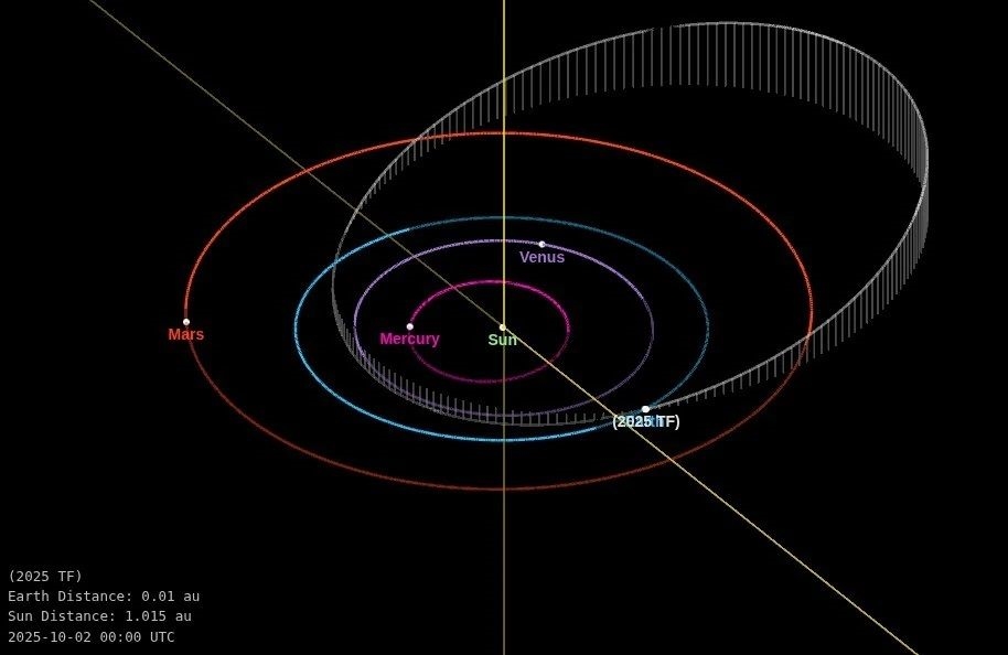 小行星2025 TF距地表仅419公里飞过 创史上第二近纪录