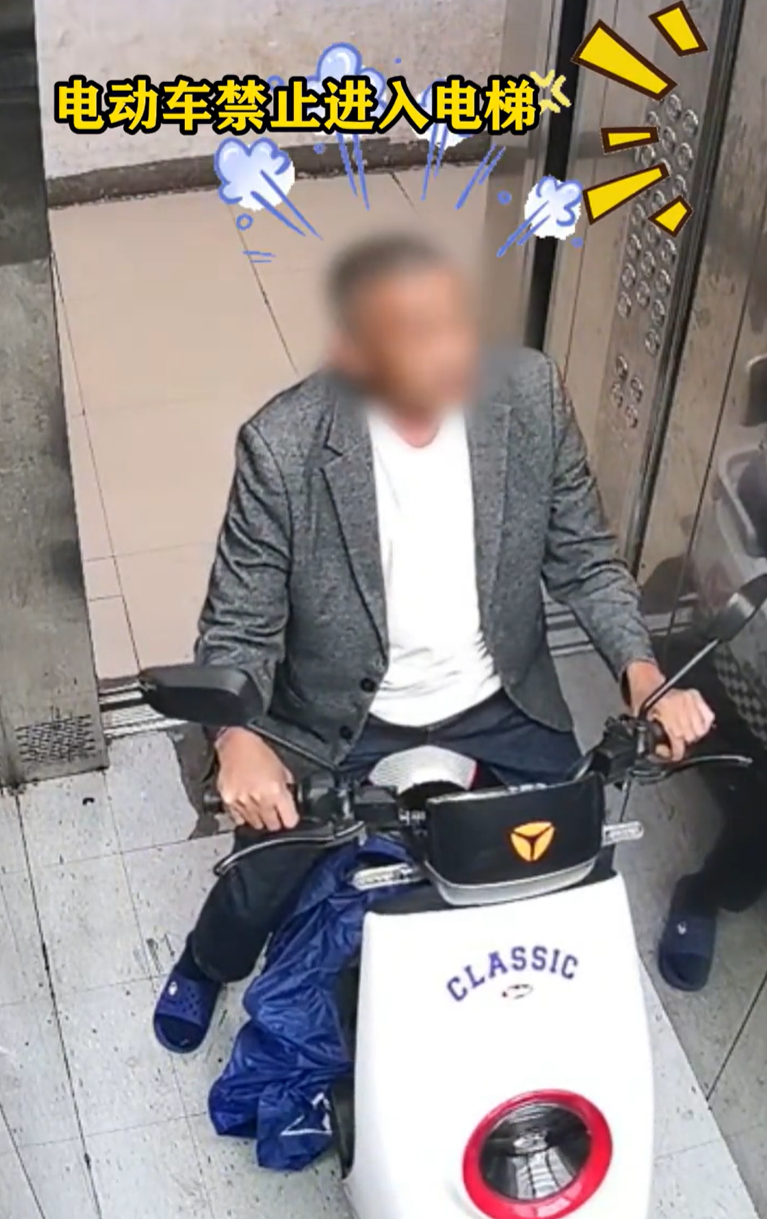 大爷为骑电动车进电梯 一锄头干掉智能阻止系统
