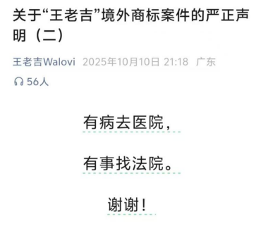 而王老吉似乎也被彻底激怒了,直接在官方渠道发布:“有病去医院,有事找法院。谢谢”。这一措辞犀利的回应,让不少网友感到诧异,甚至以为看错了账号:“揉了几次眼睛,哈哈哈哈”“我反复确认了来源……”