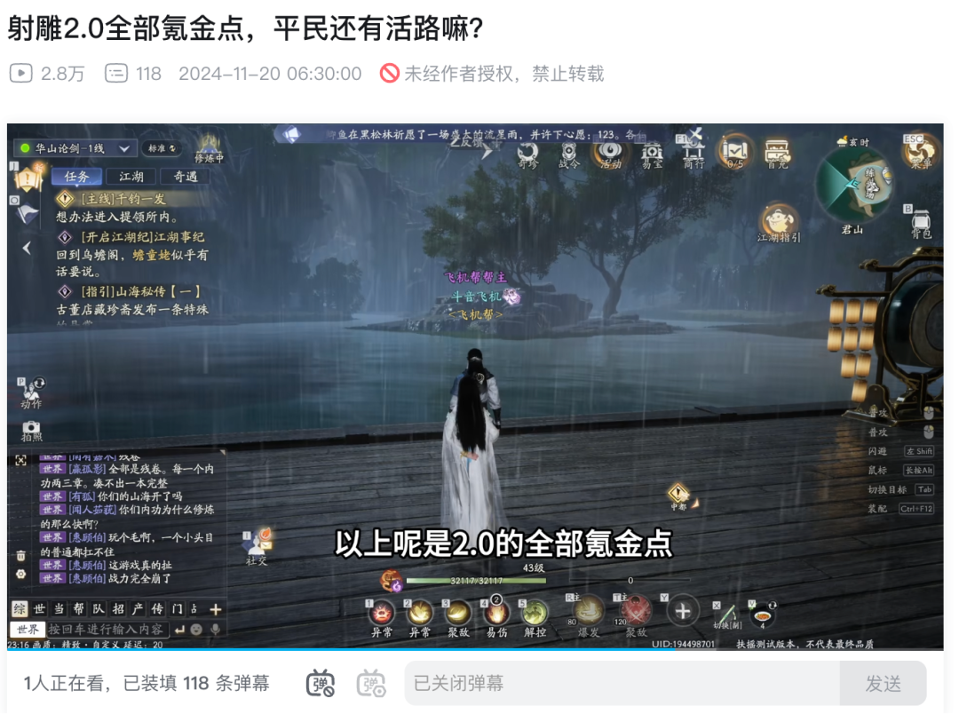 因为游戏本来就是一个缝合怪,它融合了二游开放大世界+武侠 MMO,似乎面面俱到,又好像啥也没做好。