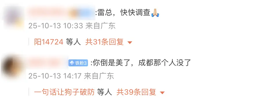 不少人涌入雷军的评论区,希望他能给出一个解释: