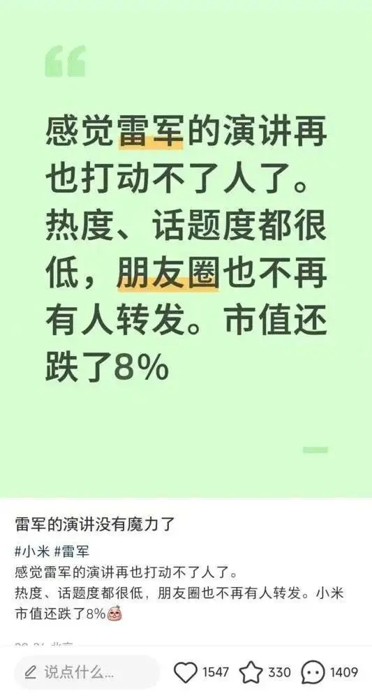 发布会后掉的最快的不是旧款的价格,是雷军的好感度。