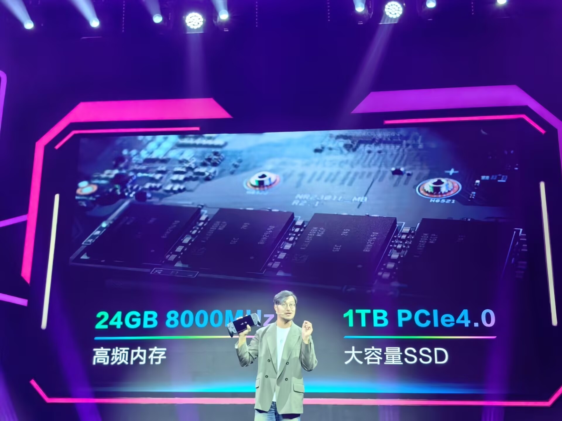 此外,该掌机还配备24GB LPDDR5X-8000MHz高频内存与1TB M.2 2280全尺寸固态硬盘,搭载80Wh大容量电池,电源键处支持Windows Hello指纹解锁。