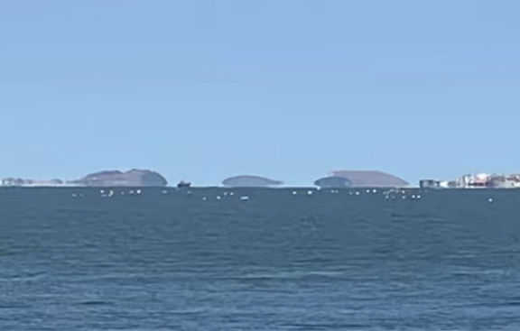 其物理过程可概括为:当海水与表层空气形成显著温差(通常>5℃)时,低空会形成密度不均的 "水晶体空气层",光线穿过时发生折射与全反射,导致岛屿、船只等实体呈现扭曲、悬浮或移位的幻象。