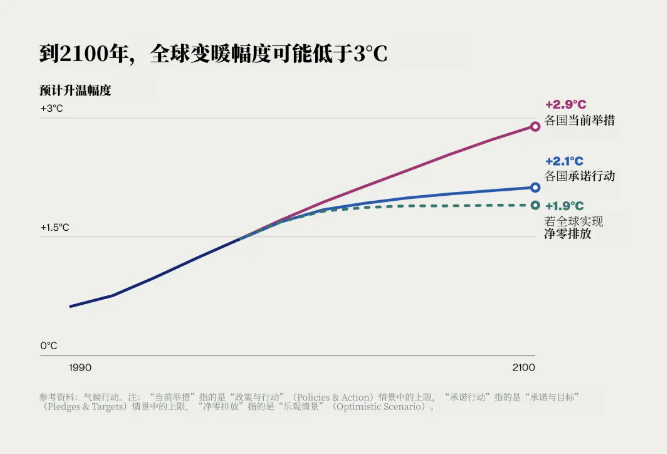 从气温变化来看,即便全球仅采取适度控温措施,当前共识是到2100年地球平均气温或比1850年高2°C至3°C,虽高于《巴黎协定》1.5°C目标,但并非不可应对。