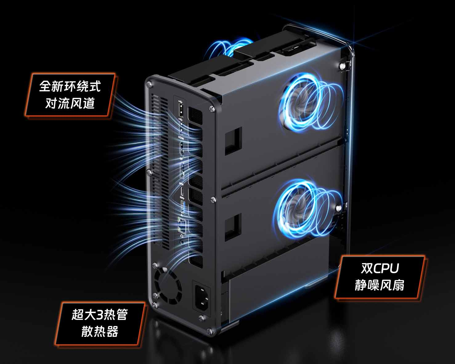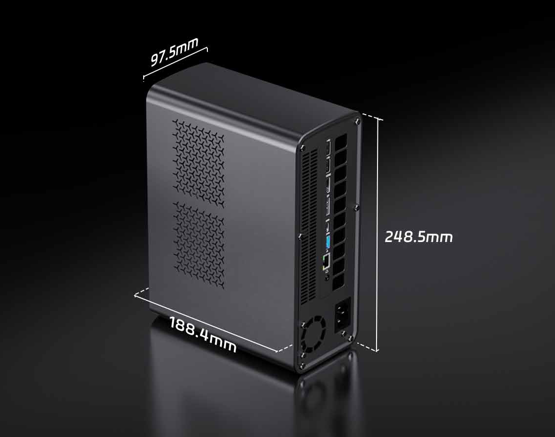 标配128GB LPDDR5X-8000内存、2TB SSD,还有第二个PCIe 4.0 M.2 2280插槽,2.5G有线和Wi-Fi 7无线网卡(蓝牙5.4),内置350W电源。