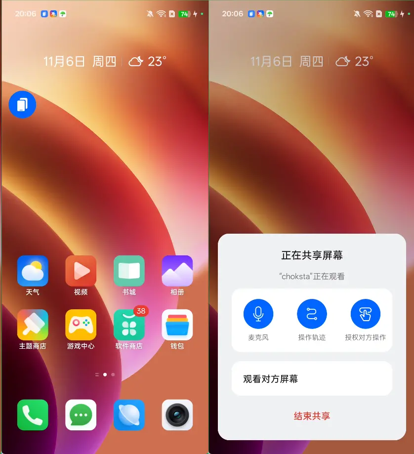 自己啥也看不到,但触摸屏幕依旧可以控制对方的手机。