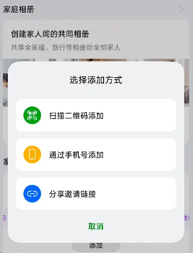 邀请的方式也有三个,扫码是最直接的,如果刚好长辈不在身边,也可以输入对方手机号添加。