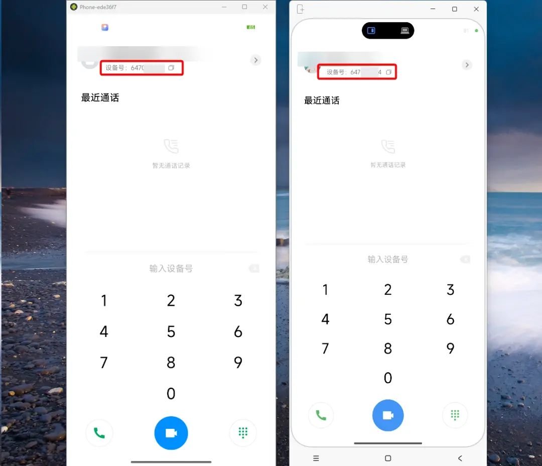 接着两台手机分别打开“小米通话”App,就能看到顶部所显示的设备码。