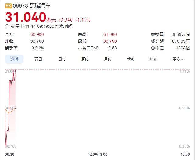 需要补充的是,时间来到今天(11月14日),奇瑞汽车开盘股价并未一飞冲天“收复失地”。