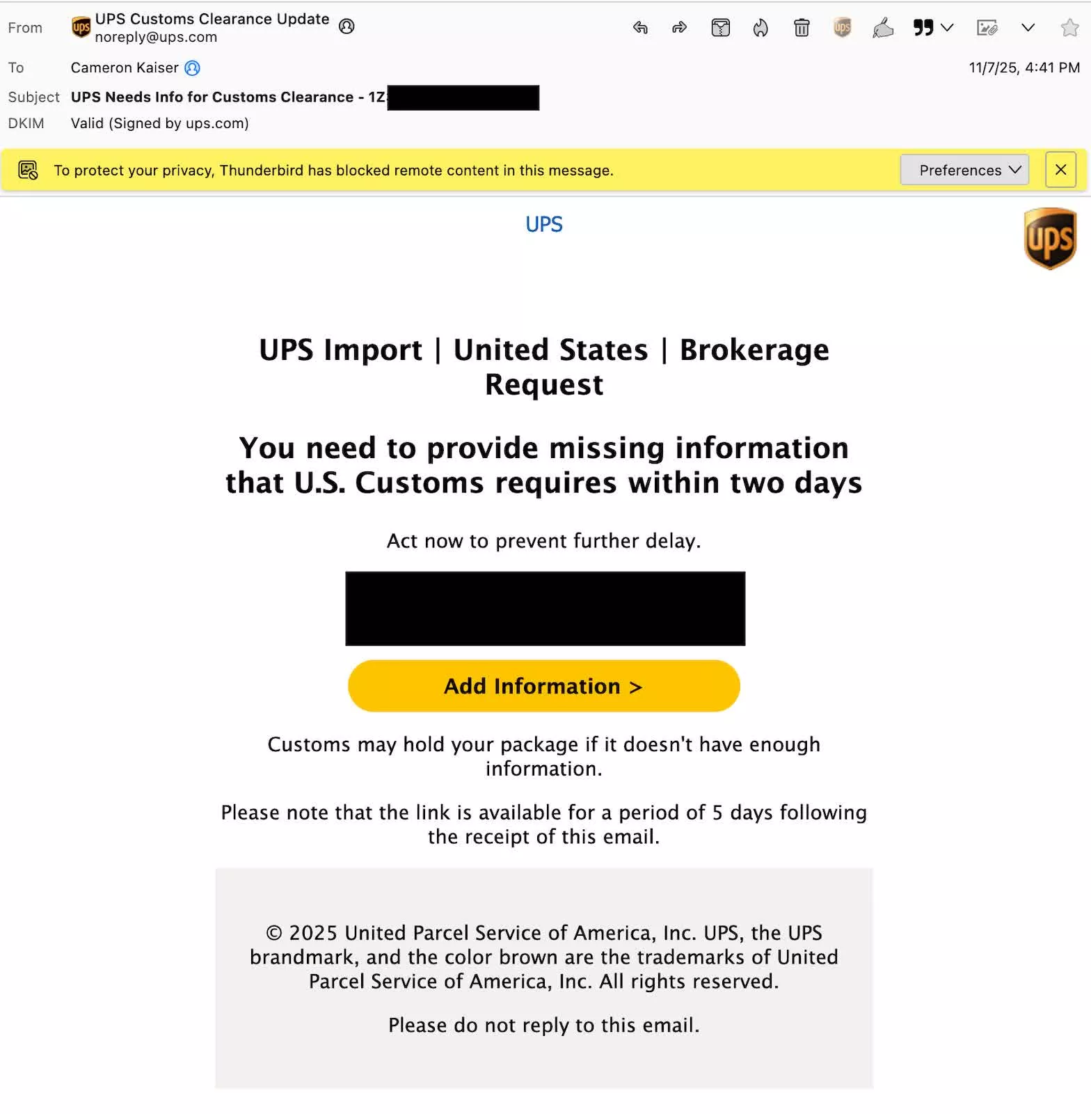 在此案例中,买家为免每日20美元的仓储费,被迫立即支付近700美元关税,并在之后通过复杂申诉程序与UPS沟通。最终,包裹被重新归类至HTSUS代码8473.30.2000(印刷电路板零配件),欧盟原产商品的关税降至15%,多收的钱被退还。