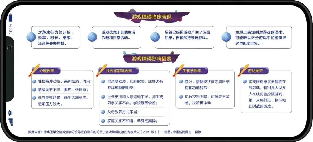 10—25 岁的青少年是游戏成瘾的高危人群。北京师范大学心理学部教授张锦涛对《中国新闻周刊》介绍,这与网络游戏的设计和青少年的心智发育特点有关。一方面,很多游戏具有强烈、精美的视听刺激,对青少年有很强的吸引力,游戏玩家的操作会持续收到及时、明确且丰富的积极反馈,让玩家花更多时间在游戏上。“有一些孩子在现实中的好友、人际支持资源很有限,他们更愿意在网上寻求支持,与游戏中的好友维持关系。”
