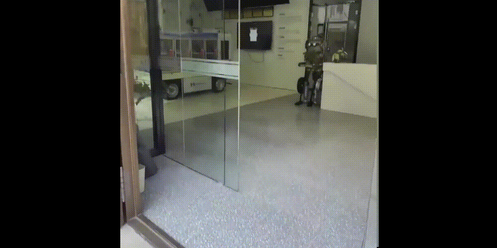 车东西凑近大楼门口,发现前台已经没有人值守,还看到地上有一些堆积的快递。
