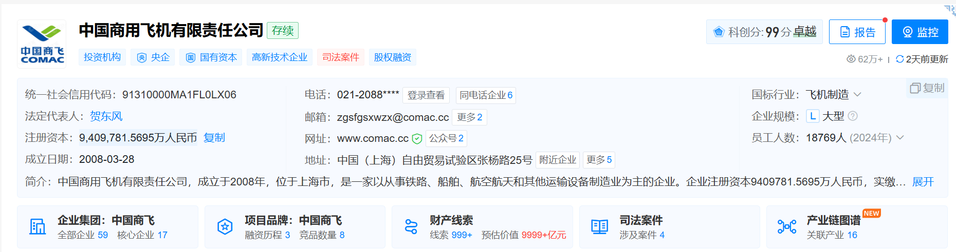 作为国内唯一的商用大飞机公司,商飞公司日前获得了新一轮注资,多达440亿。从天眼查信息得知,中国商飞最近发生了工商变更,注册资金已经从501亿提高到了940亿,几乎翻倍。