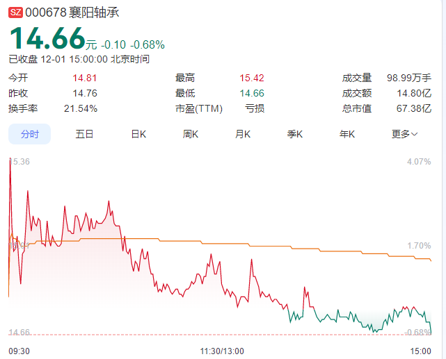 值得一提的是,在今日(12月1日)A股开盘后,襄阳轴承的股价走势又出现新变化。