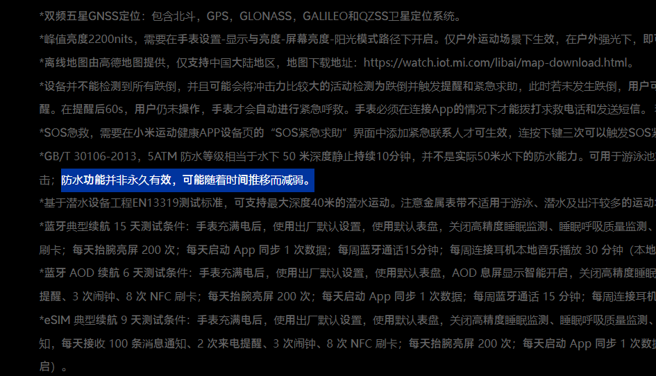 更关键的是,防水性能不是永久的,而是会随时间衰减,密封圈老化,接口松动,甚至磕一下都可能会影响防水效果,这也是为啥很多厂商会在免责条款里写上 “ 防水非永久有效,进水不保修 ”。