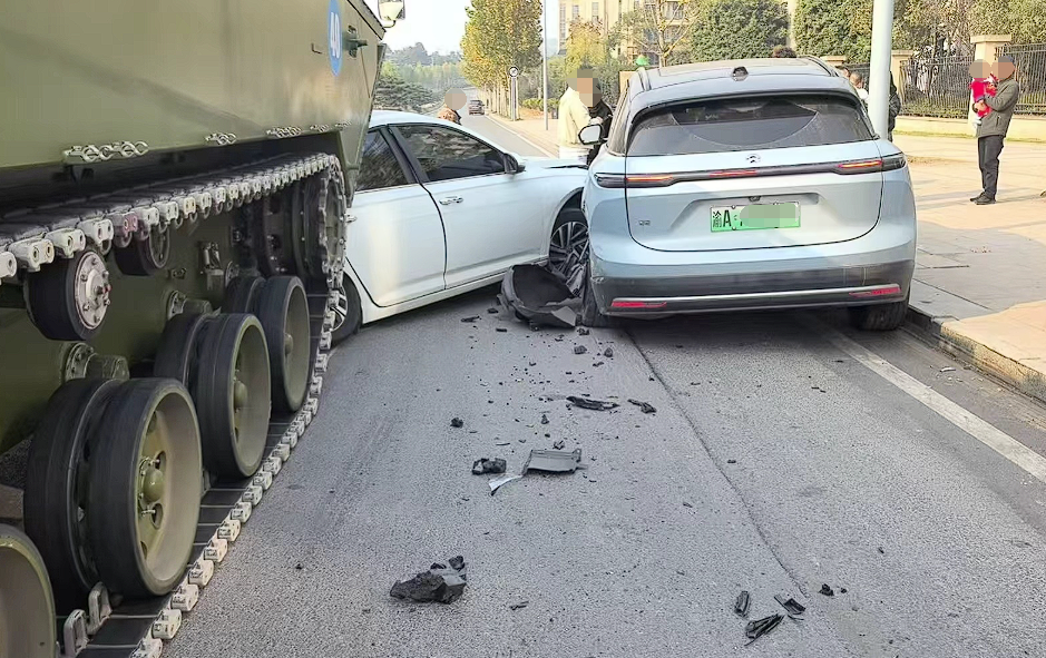 近日,重庆九龙坡区某十字路口,一辆正常直行的试制装甲车不慎撞上了一台违规掉头的大众轿车,并殃及路边停放的一辆蔚来SUV。从蔚来行车记录仪拍摄的视频看,当时这辆白小轿车在道路中央突然掉头,与此同时,一辆正常行驶的军用试制装甲车正通过路口,由于躲闪不急与之发生碰撞。