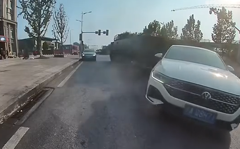 轿车违规掉头被试制装甲车撞了个正着 司机需负全部责任