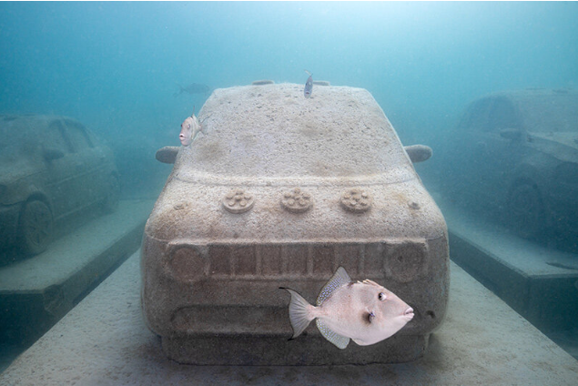 迈阿密打造水下艺术公园 将22辆“汽车”推入海底给珊瑚当家