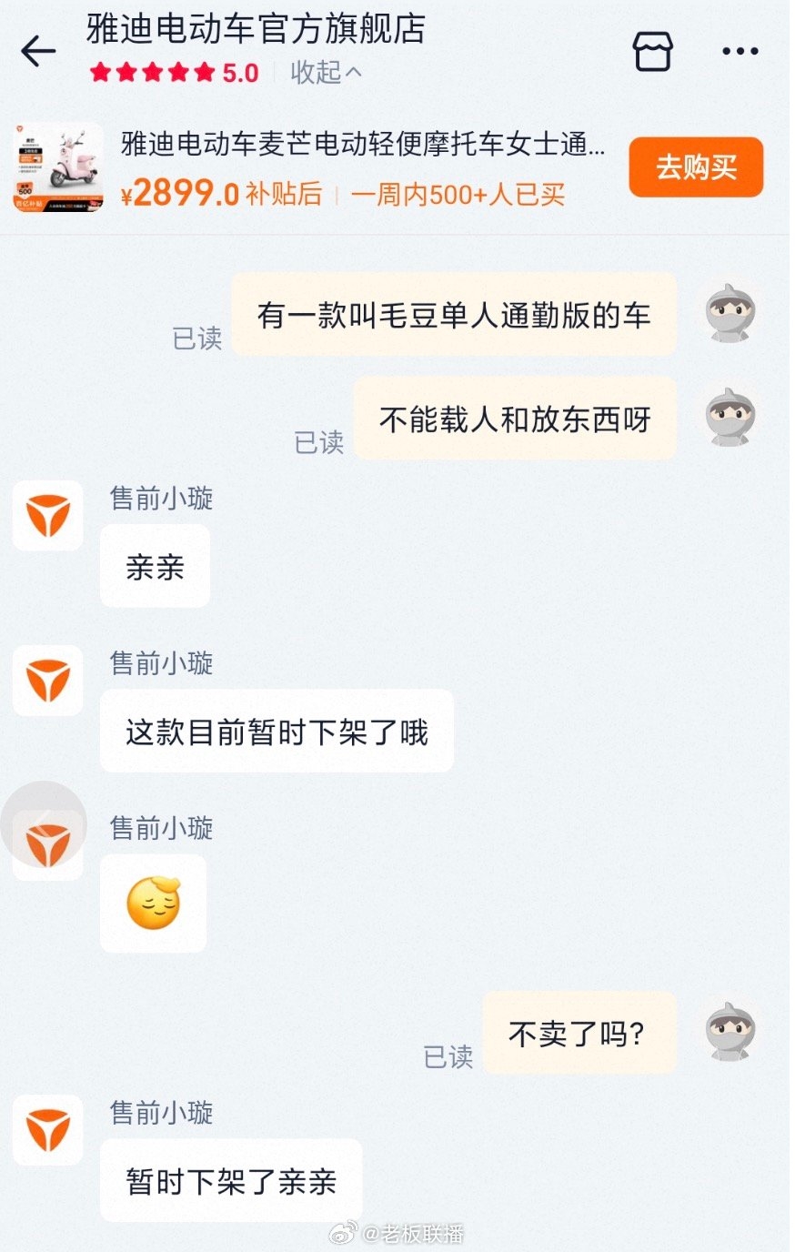 而问及该款车型是否因吐槽太多而被下架,客服未正面回应,仅回复一个笑哭表情。