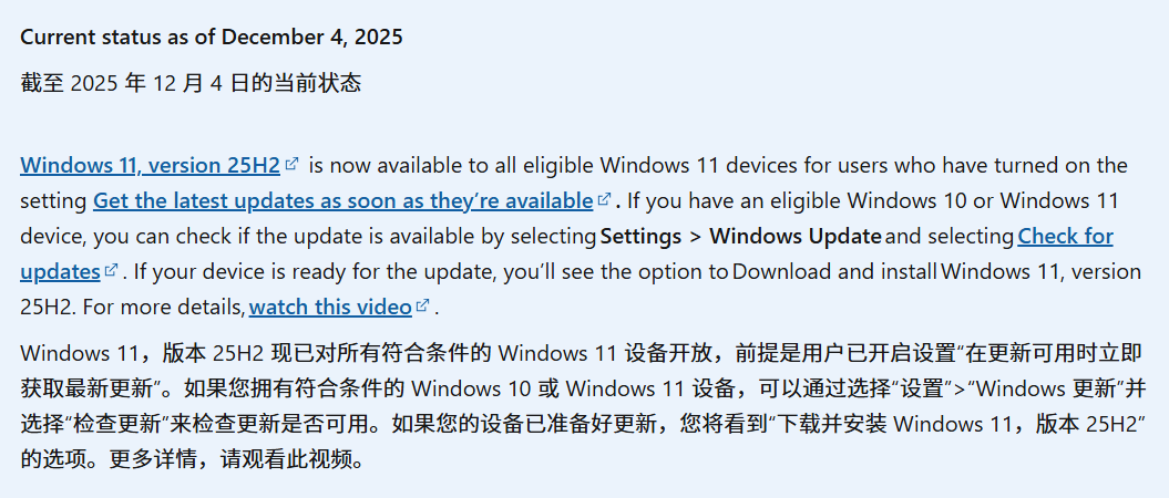 微软全面开放Windows 11 25H2升级 所有受支持设备都能升
