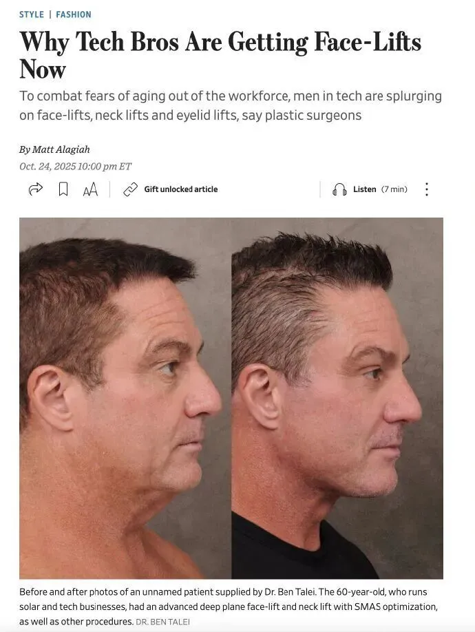 据《华尔街日报》调查,硅谷整形外科诊所的预约量半年暴涨 40%,三分之二客户是科技公司员工,平均年龄连 35 岁都不到。