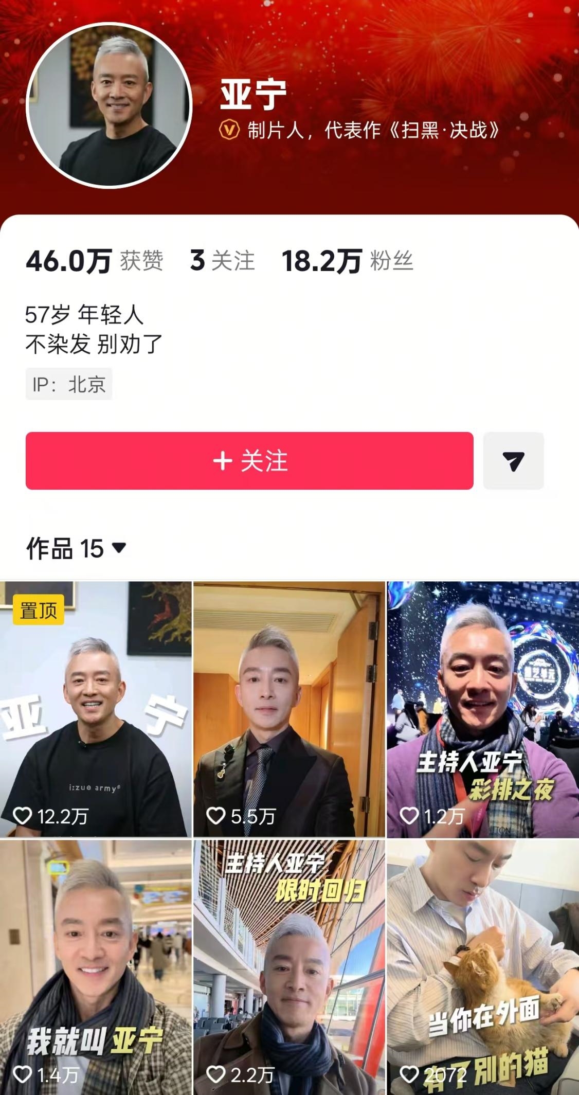 据悉,上世纪90年代,亚宁是红极一时的主持人,他主持的《中国音乐电视》《同一首歌》等栏目风靡一时。