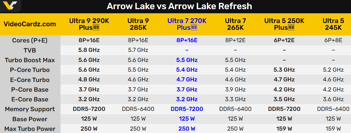 可以确认,Intel即将推出的Arrow Lake-Refresh升级版,包括酷睿Ultra 9 290K Plus、酷睿Ultra 7 270K Plus、酷睿Ultra 5 250K Plus,分别对应现在的285K、265K、245K,增加E核和/或提升频率。现在,酷睿Ultra 7 270K Plus再次现身GeekBench,并且检测到了所有频率。