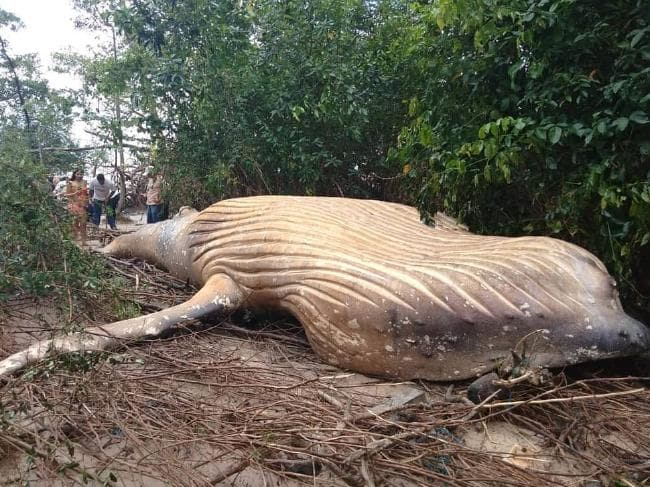 2019年2月,在亚马逊灌木丛里,当地渔民发现了一头幼年座头鲸的尸体:长8米,重达10吨,尸体所在的位置离海岸线15米。身上没有明显受伤迹象,一切都显得那么可疑,科学家们困惑不已:“它怎么会出现在这里,又是怎么上去的?”