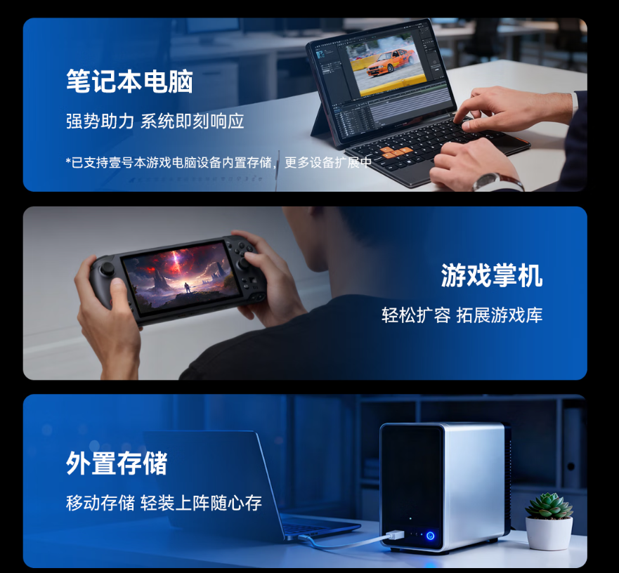 目前,CL100已适配OnexPlayer壹号游侠X1 Air三合一PC、OnexPlayer壹号本飞行家APEX、OnexPlayer壹号本Super X、GPD Win 5等多款掌机设备。