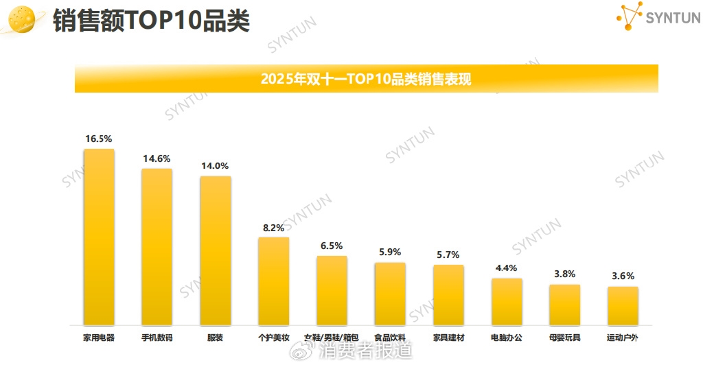 据星图数据显示,“双11”家用电器的销售总额达2668亿元,在各大品类中位居首位。