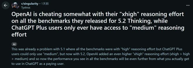 有人表示,如果用户得到的“推理力度”参数是一样的,也用的是同样的token,那OpenAI就不算虚假营销。