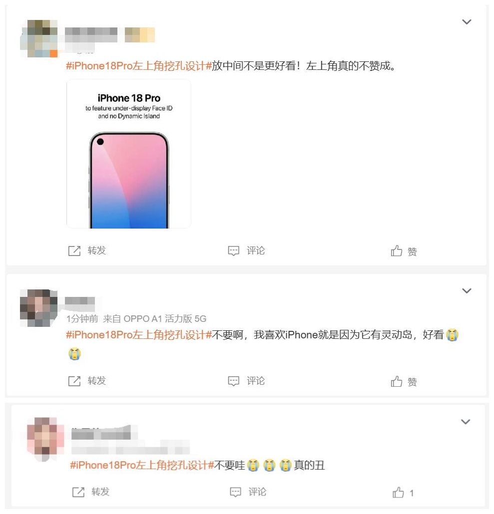 传iPhone 18 Pro改左上角挖孔 网友呼吁苹果不要这么做