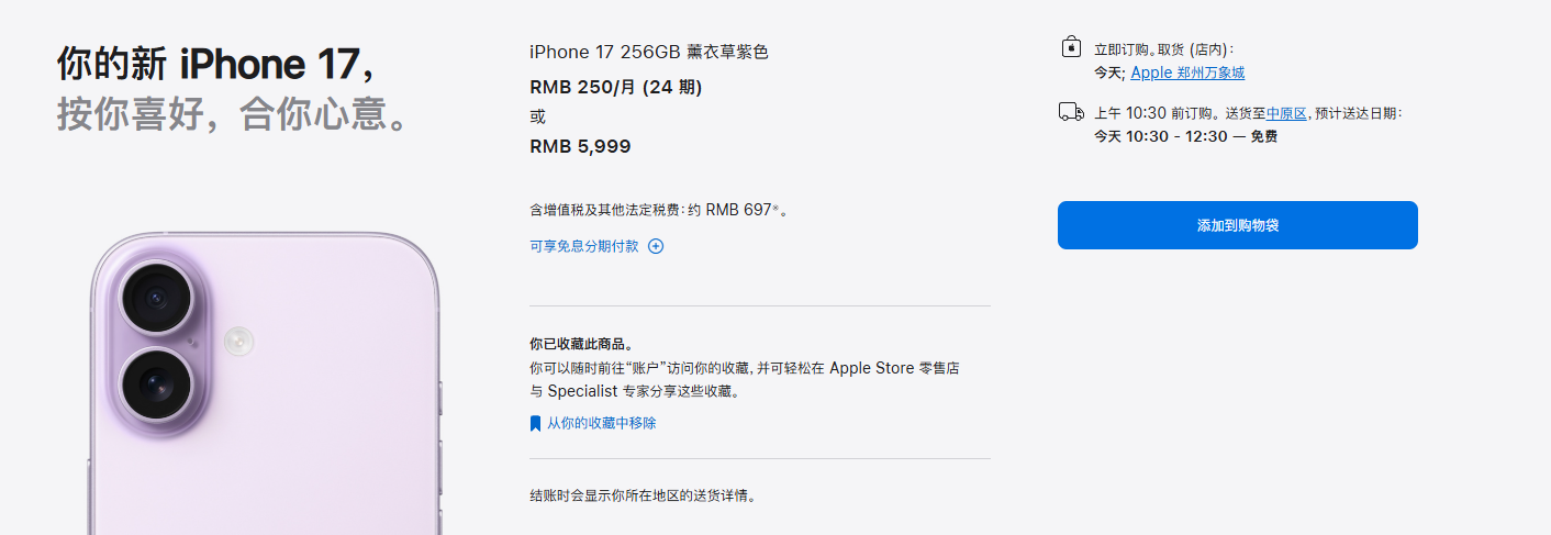 iPhone 17系列交货时间大幅缩短:标准版、Pro版国内下单当天到手