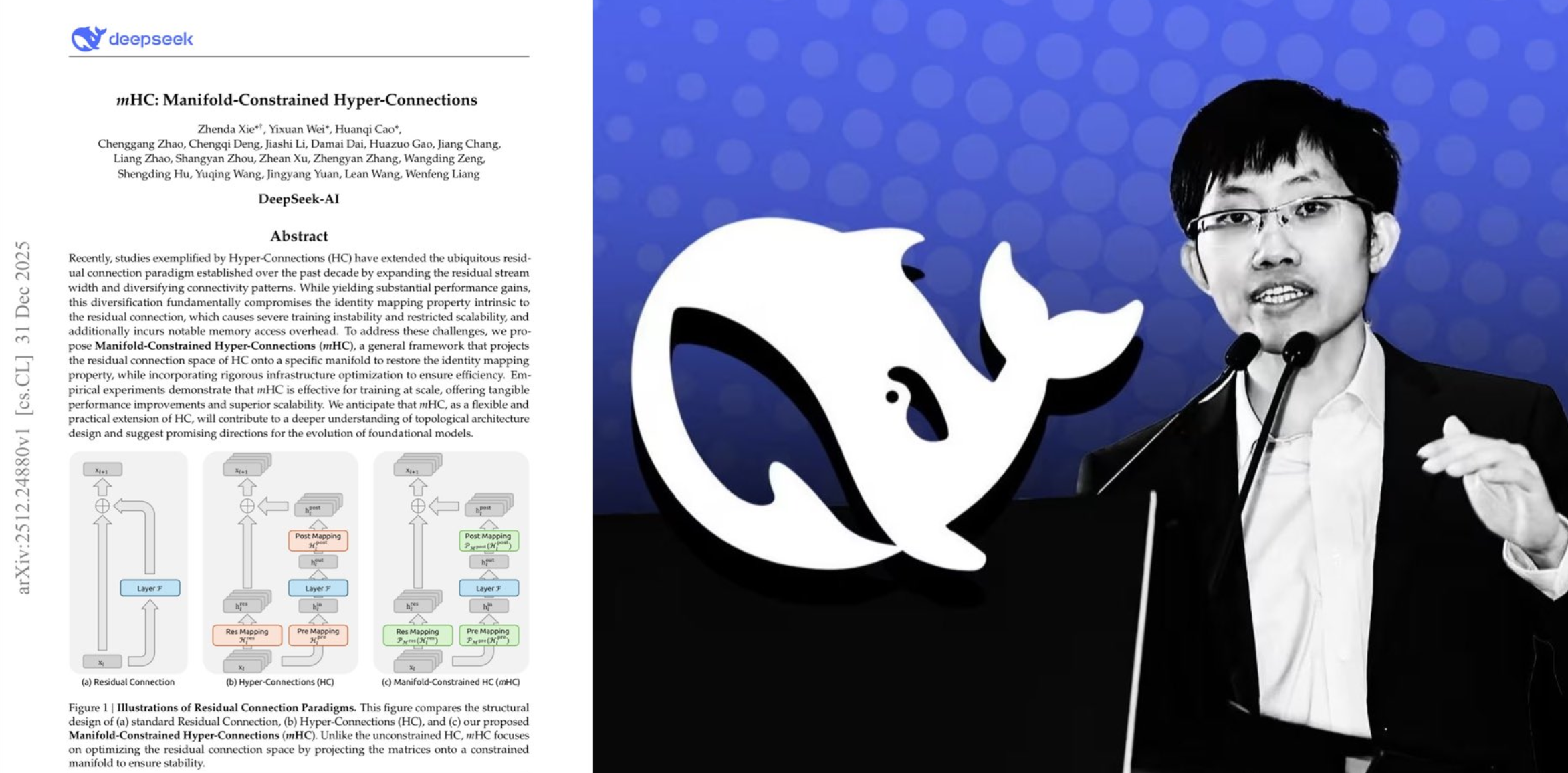 刚刚过去的2025年中,万众期待的DeepSeek全新大模型没有问世,但是DeepSeek并没有闲着,这一年中继续打磨了DeepSeek V3.X大模型,还发布了多项新技术。2026年元旦假期,DeepSeek又发了一个新论文,提出了名为“流形约束超连接”(mHC)的框架,又一次引发了热议。
