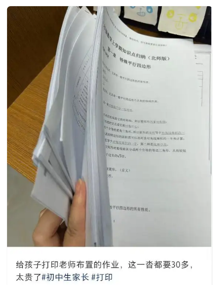 打印作业成为家长负担 每周打印3至5次作业引热议