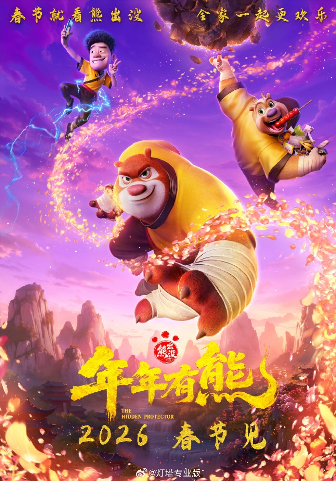 另一部定档影片《熊出没·年年有熊》则是陪伴观众多年的经典动画IP新作。作为春节档的合家欢标配,《熊出没》系列始终以温馨的故事、可爱的角色和欢乐的氛围,成为全家观影的首选。