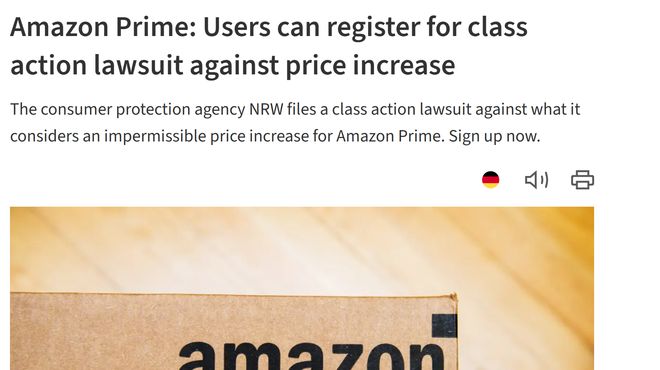 据heise online报道,德国北莱茵-威斯特法伦州消费者中心(Verbraucherzentrale NRW)2026年1月12日发布的公告,该机构已对亚马逊发起集体诉讼,要求其向因Prime会员涨价而受损的消费者退还差价,符合条件的消费者最高可获约60欧元赔偿。