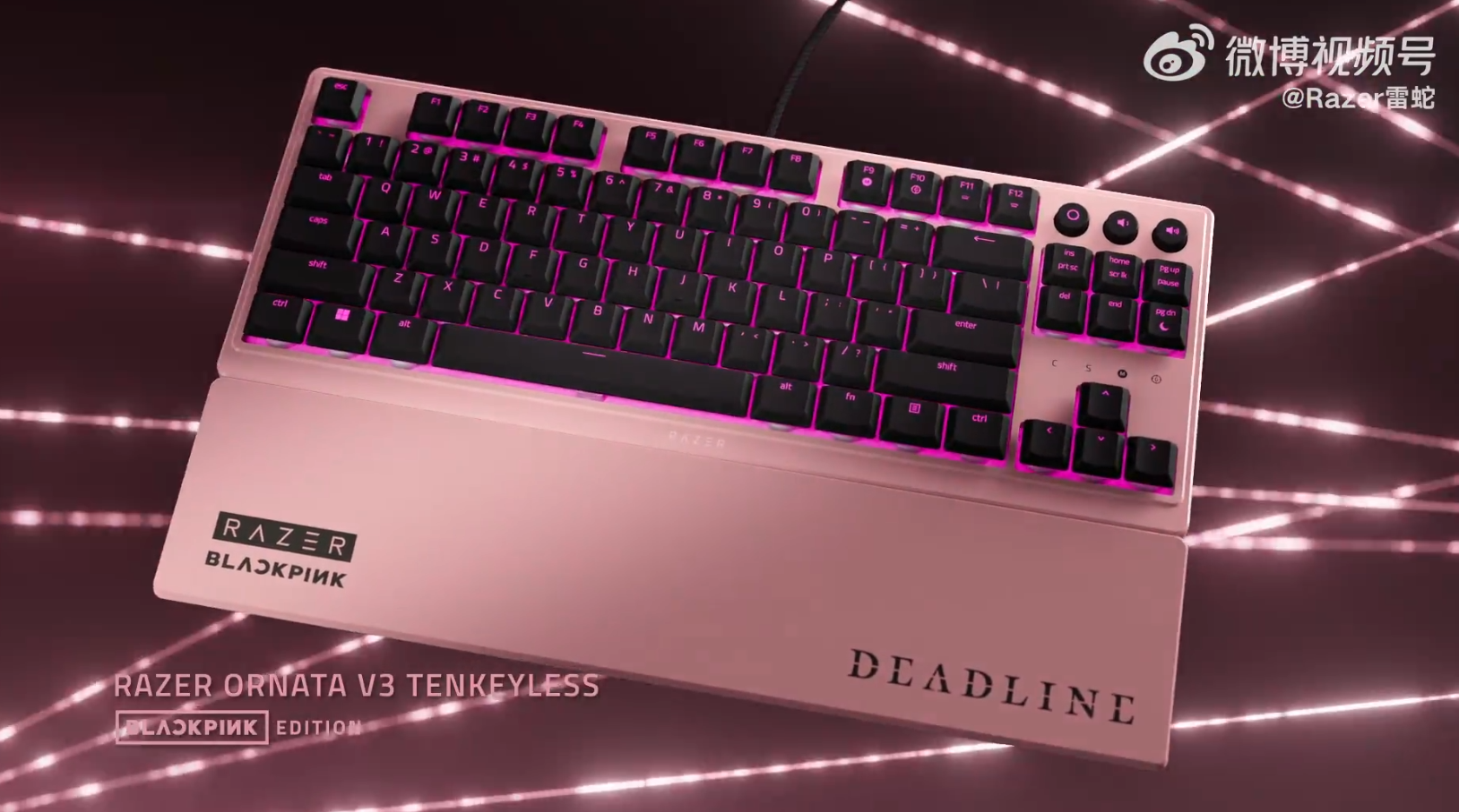 本次联名外设整体采用粉色美学设计,产品上均印有“DEADLINE”字样,喜欢电竞的BLACKPINK粉丝很难不心动。